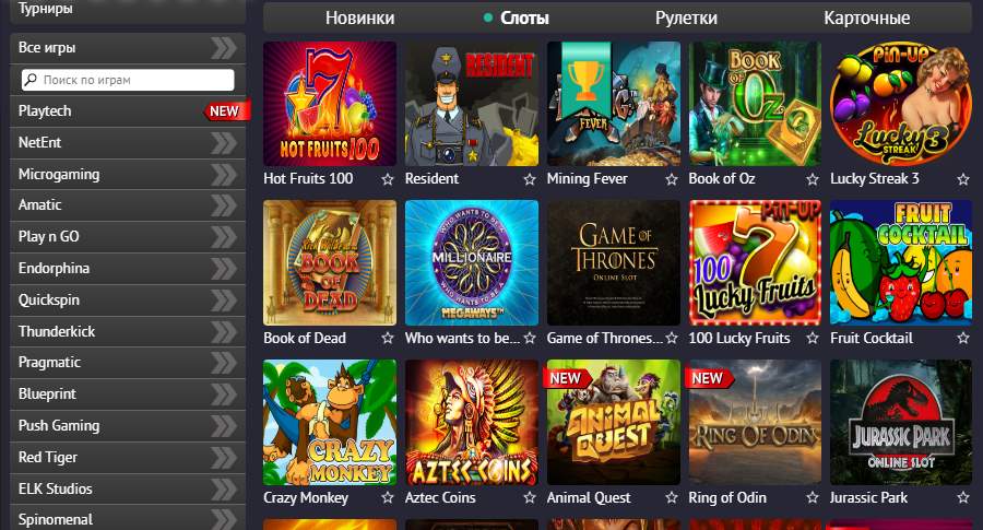 - GameArt, BetSoft, Play’n Go и Spinomenal;